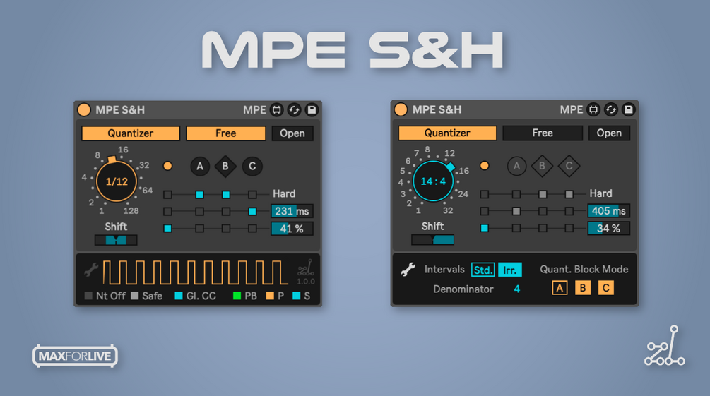 MPE S&H — “MIDI Polyphonic Expression Sample And Hold” is a mouthful, isn’t it? — is a Max for Live MIDI Effect which allows gating and quantizing of MIDI notes and their MPE control data.